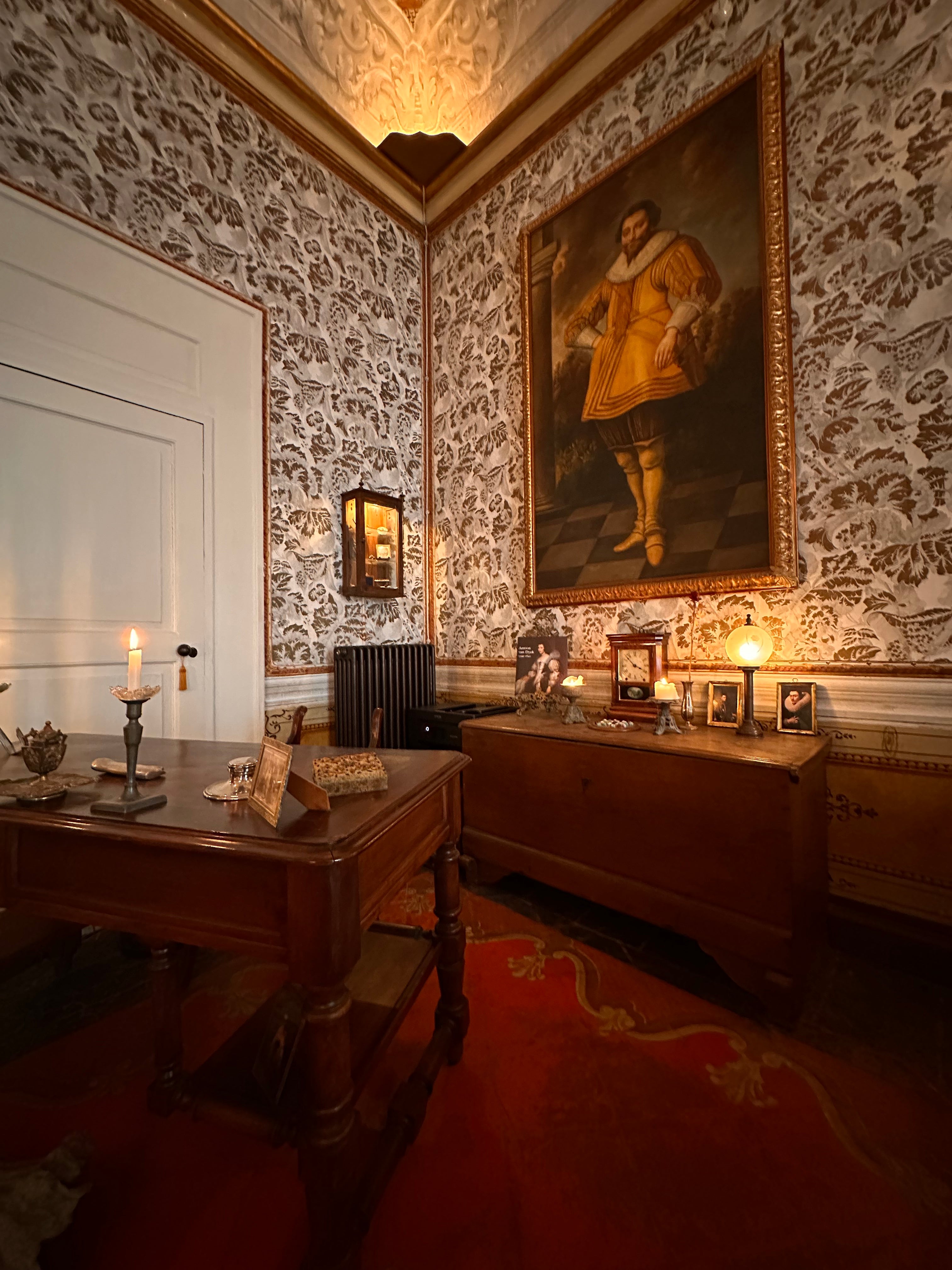 Suite V bietet den Charme eines privaten Apartments innerhalb der Residenz und verfügt über einen komfortablen Wohnbereich, ein separates Schlafzimmer sowie zwei Badezimmer – eines mit Badewanne und Dusche und eines mit Waschbecken. Die dezenten Farbtöne und die antike Einrichtung schaffen eine Atmosphäre ruhiger Eleganz, ideal für längere Aufenthalte oder Gäste, die Wert auf Raum und Privatsphäre legen.